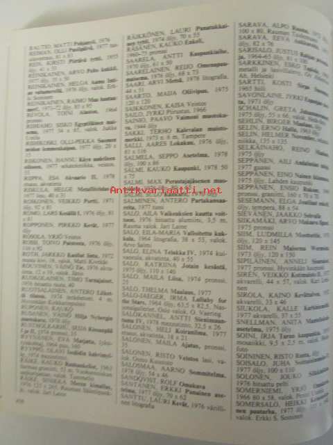| Saatavilla | 1 kpl | | Julkaisuvuosi | 1979 | | Sivuja | 458 | | Painos | 1. | | Kunto | K3 | | Sidonta/painoasu | Sidottu (kansipaperit) | | ISBN | 951-95545-1-3 | | Kielet | Suomi |