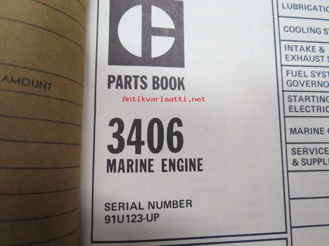 Caterpillar 3406 Marine Engine Parts Book (serial numbers 91U123-up) -merimoottori varaosaluettelo