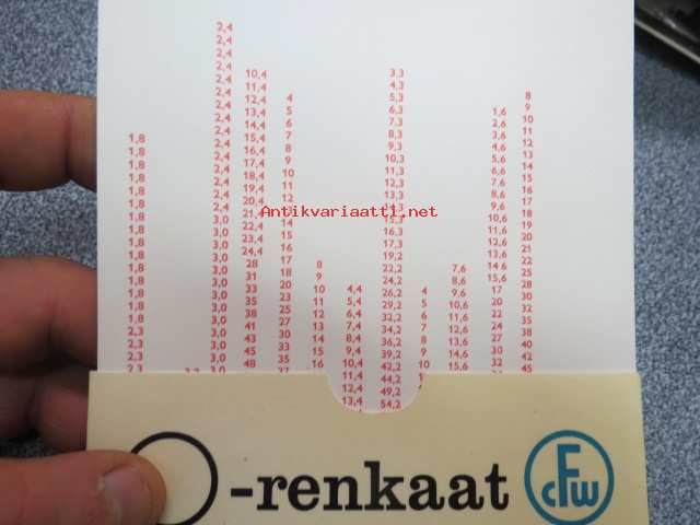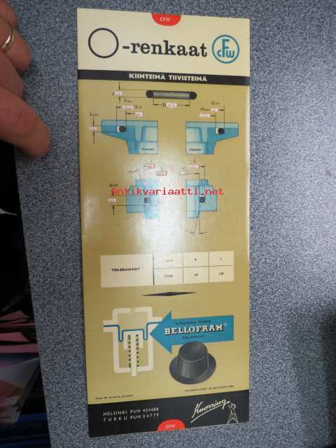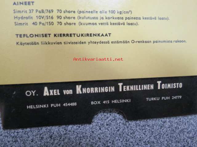 CFW O-renkaat teknisten tietojen liukutaulukko / Oy Axel von Knorringin Teknillinen Toimisto
