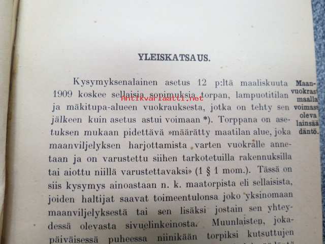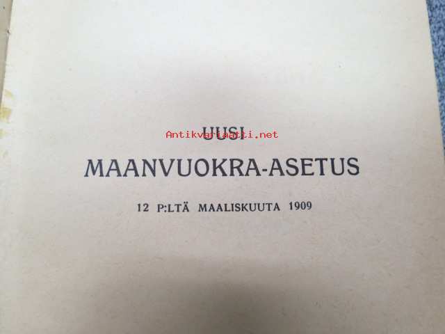 Uusi maanvuokra-asetus 12 p:ltä maaliskuuta 1909 - Asetus torpan, lampuotitilan ja mäkitupa-alueen vuokrauksesta - maanomistajia ja vuokramiehiä varten -