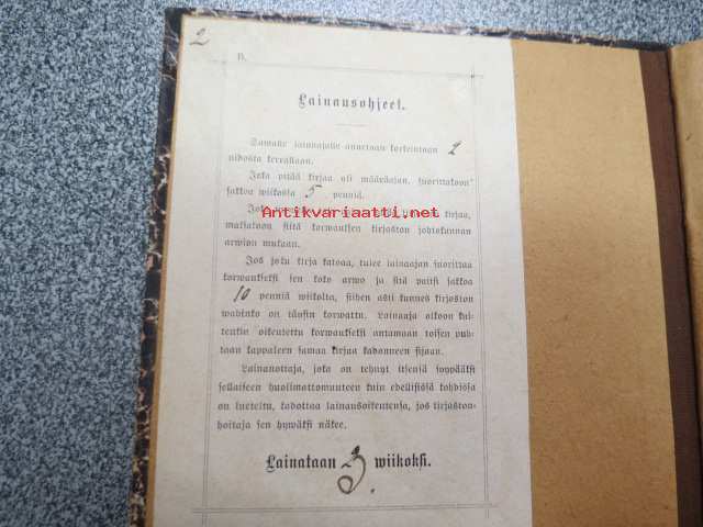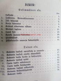 | Saatavilla | 1 kpl | | Julkaisuvuosi | 1890 | | Sivuja | 76 | | Painos | 1. | | Kunto | K2 | | Kirjastoleimat | | Sidonta/painoasu | Jälkisidos | | Kielet | Suomi |