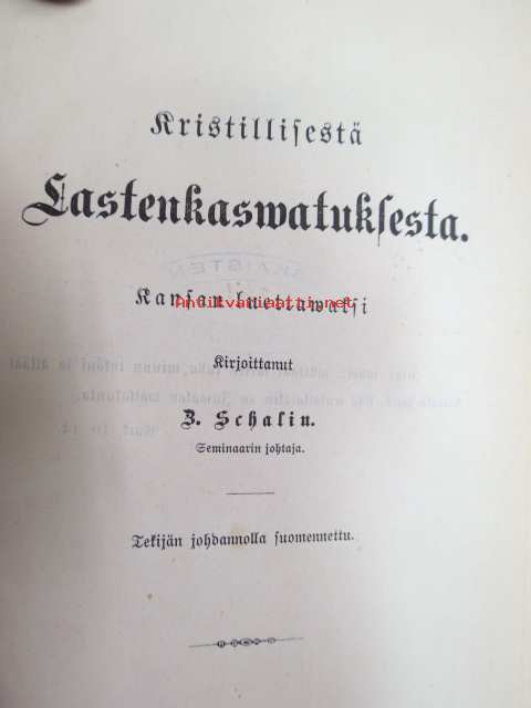 Kristillisestä Lastenkaswatuksesta. Kansan luettawaksi kirjoittanut B. Schalin. Seminaarin johtaja.