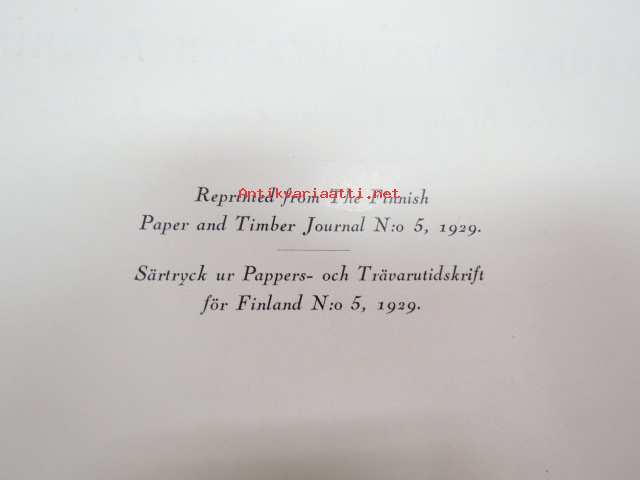 | Saatavilla | 1 kpl | | Julkaisuvuosi | 1929 | | Sivuja | 12 | | Kunto | K2 | | Kannessa naarmu - cover has scratch | | Sidonta/painoasu | Nidottu (pehmeäk.) | | Kielet | Ruotsi, Englanti |