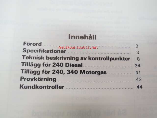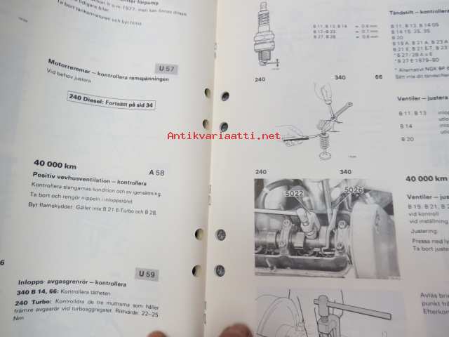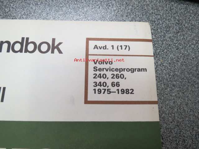 Volvo Servicehandbook - Reparation och underhåll Avd. 1 (17) Volvo serviceprogram 240, 260, 340, 66 1975-82 -korjaamokirjasarjan osa ruotsinkielellä
