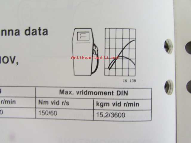 Volvo Servicehandbook - Reparation och underhåll Avd. 0 (03), Specitioner 340, 1976-1982