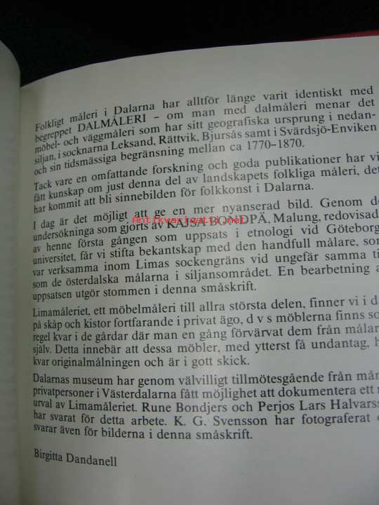 | Saatavilla | 1 kpl | | Julkaisuvuosi | 198? | | Sivuja | 39 | | Kunto | K3 | | hyvä | | Sidonta/painoasu | Sidottu (kovak.) | | ISBN | 91-85378-49-6 | | Kielet | Ruotsi |