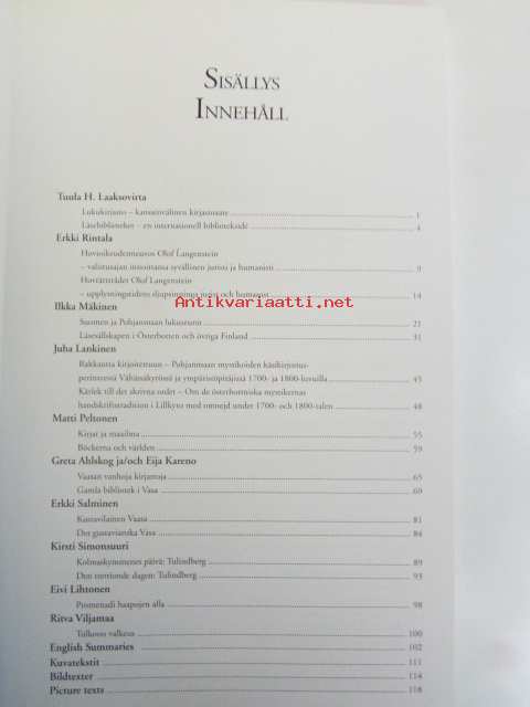 | Saatavilla | 1 kpl | | Julkaisuvuosi | 1994 | | Sivuja | 121 | | Kunto | K3 | | Sidonta/painoasu | Nidottu (pehmeäk.) | | ISBN | 952-90-5804-7 | | Kielet | Suomi |