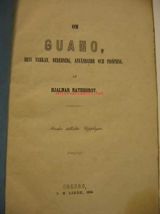 Nathhorst Hjalmar, 1856Guanon käyttö lannoitteena. Sen ominaisuudet, käyttö, kokeilu ym.
