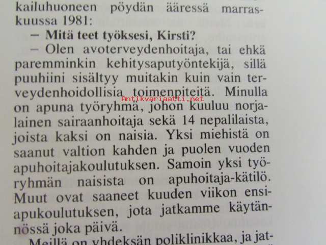 | Saatavilla | 1 kpl | | Julkaisuvuosi | 1983 | | Sivuja | 193 | | Kunto | K3 | | Sidonta/painoasu | Kuvitettu kovakantinen | | ISBN | 951-600-598-5 | | Kielet | Suomi |