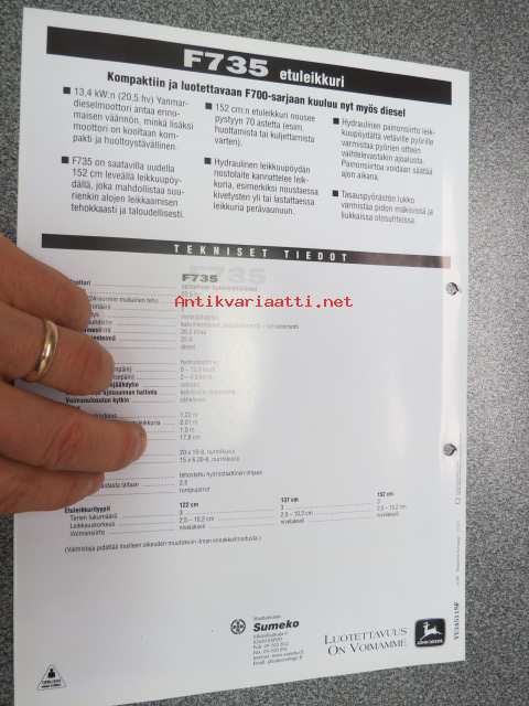 John Deere F735 etuleikkuri -myyntiesite