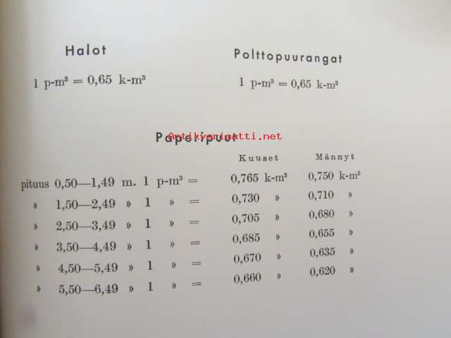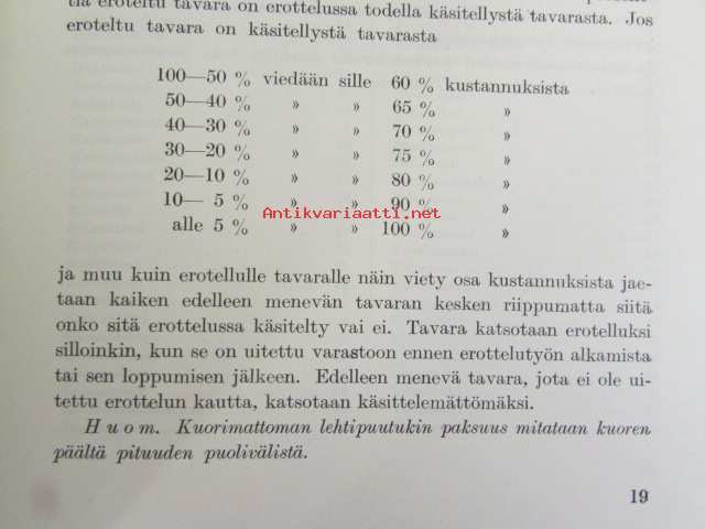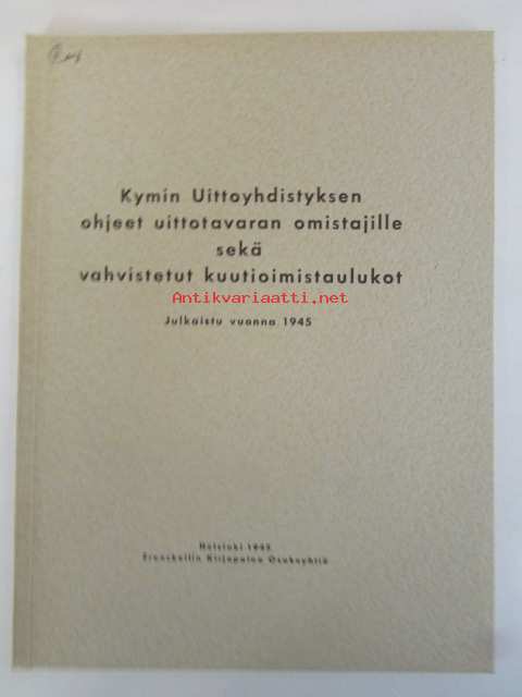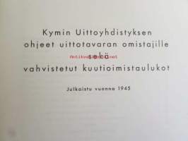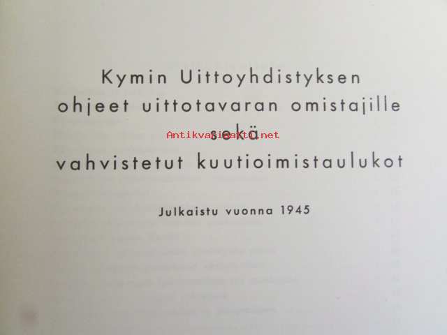 Kymin uittoyhdistyksen ohjeet uittotavaran omistajille sekä vahvistetut kuutioitumistaulukot
