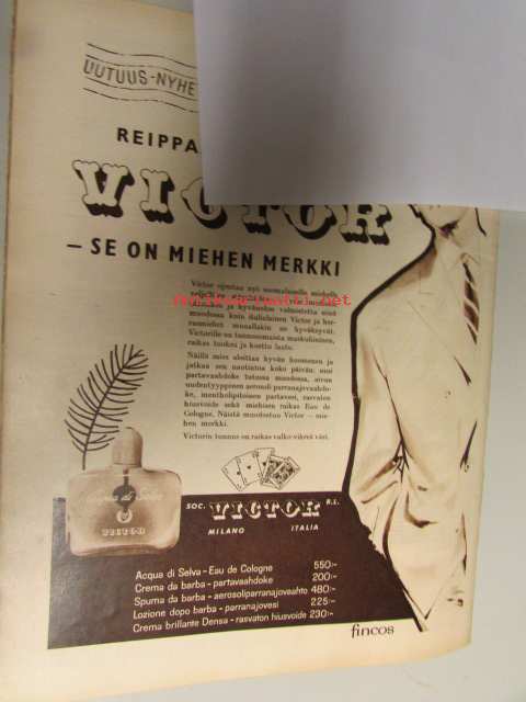 Suomen Kuvalehti 1959 nr 10, 7.3.1959 Suomen Kadettikoulu, Tom Krause. Artikkeli: hypnoosi. Suomen Messut kuvissa mm Olle Herold, Olli Borg, Antti Nurmesniemi, Walter Wahlroos ja Ilmari Tapiovaara, Salpausselän kisat mm. Siiri äitee Rantanen, Elokuva Punainen viiva esitellään, Mainos - Nuutajärven lasisarja Mister, ym.