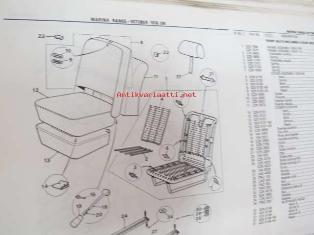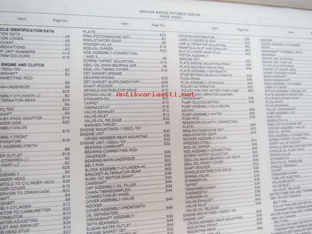 British Leyland, Morris Marina Range-October 1975 on Parts Catalogue -varaosaluettelo