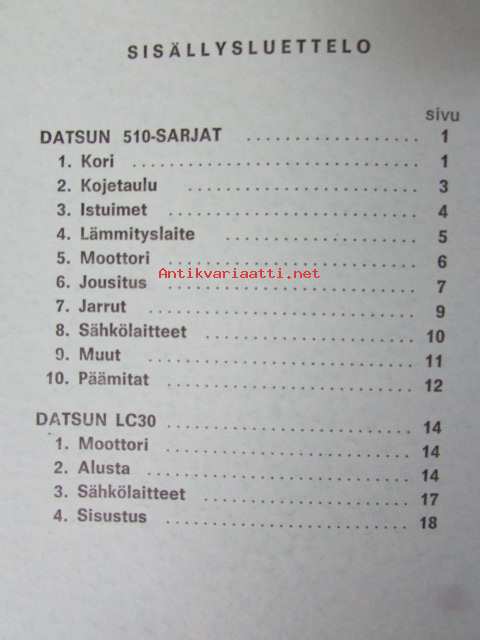 Datsun Nissan 1970 510 ja LC 30 sarjan mallin muutokset