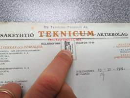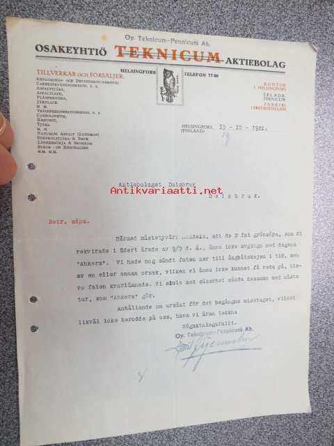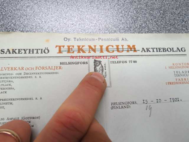 Oy Teknicum-Fennicum Ab, Helsinki 15.10.1921 -asiakirja