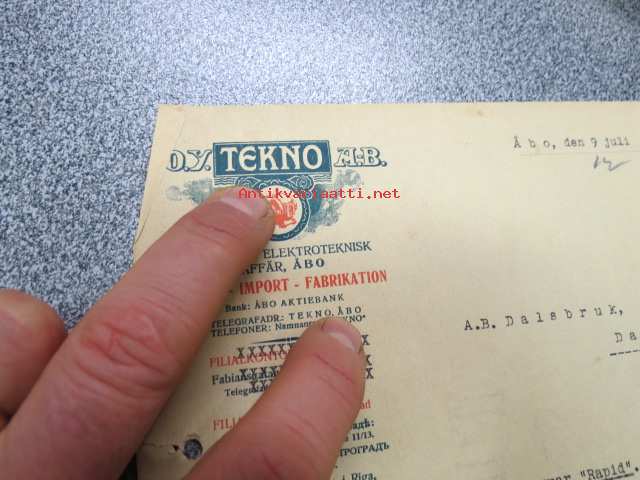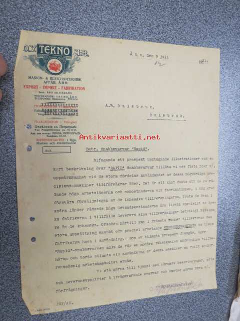 Oy Tekno Ab Turku 9.7.1921 -asiakirja
