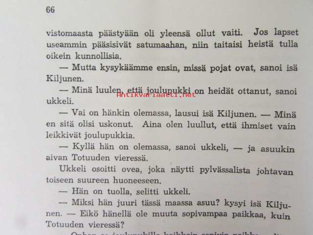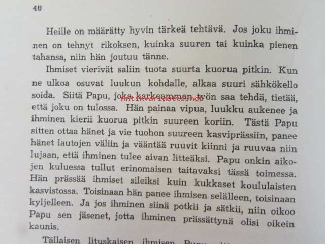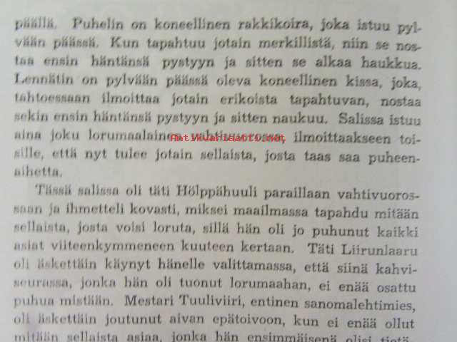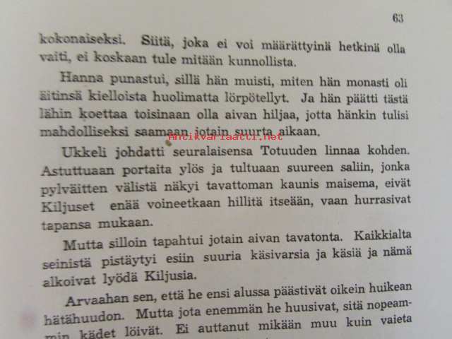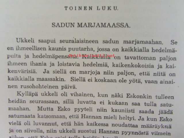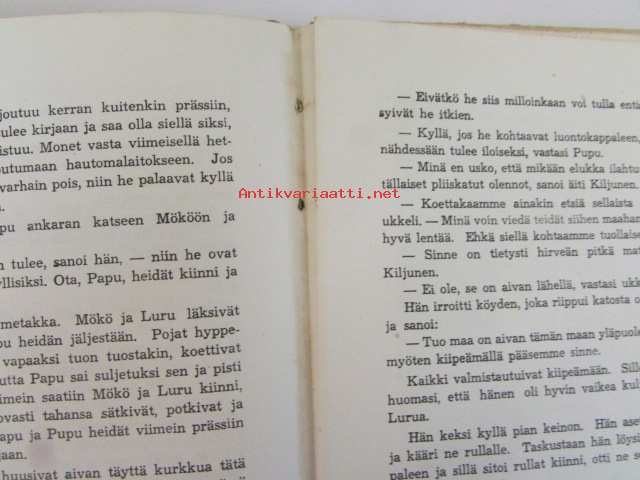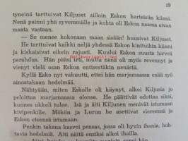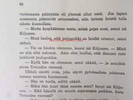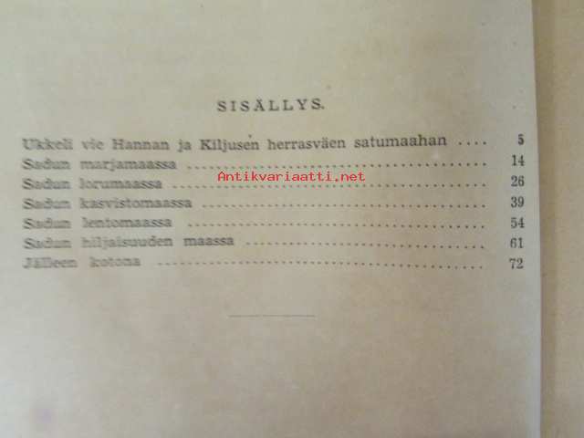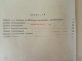| Saatavilla | 1 kpl | | Julkaisuvuosi | 1945 | | Sivuja | 79 | | Kunto | K2 | | Yksi sidos on irti | | Sidonta/painoasu | Kuvitettu kovakantinen | | Kielet | Suomi |