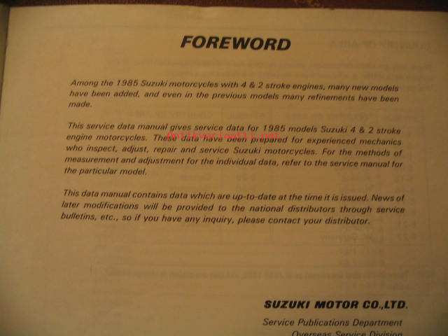 Suzuki 1985 (1/2) 4 & " stroke service data