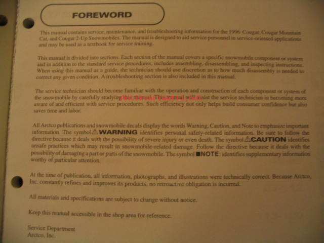 Arctic Cat 1996 Cougar - Cougar Mountain Cat - Cougar 2-Up snowmobile Service Manual korjaamokäsikirja