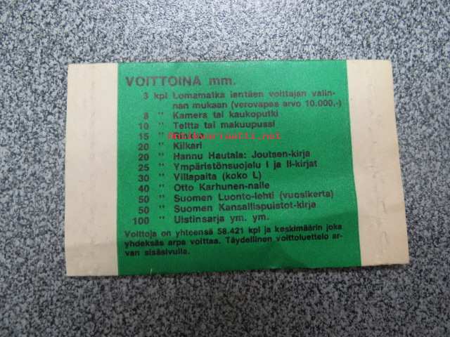 | Saatavilla | 1 kpl | | Julkaisuvuosi | 1989 | | Kunto | K3 | | Sidonta/painoasu | Pienpainate | | Kielet | Suomi |