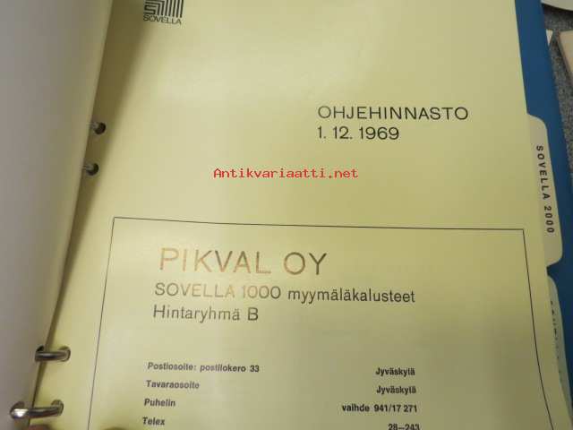 Pikaval Oy / Sovella -kalusteet -esitekansio + hinnasto 1960-70 lukujen taitteesta