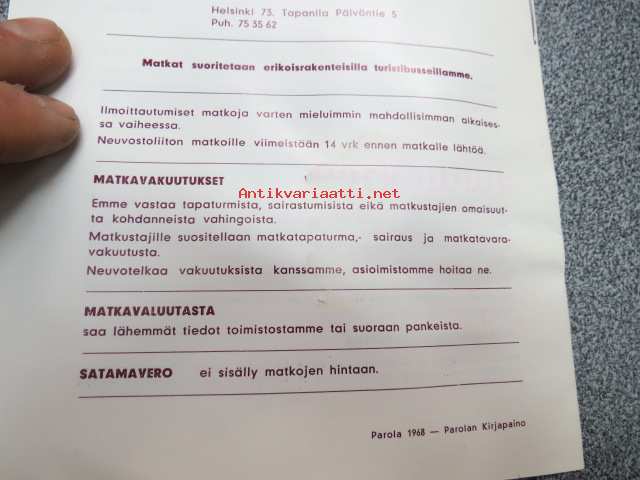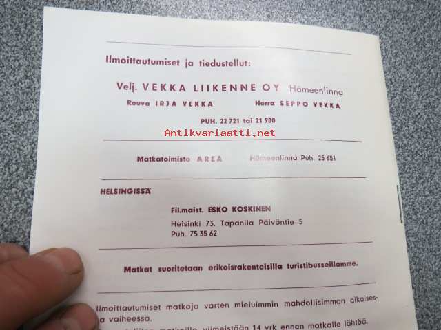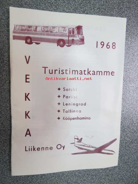 Vekka Liikenne Oy 1968 Turistimatkamme Sotshi, Pariisi, Leningrad, Tallinna, Kööpenhamina -bussimatkojen esite