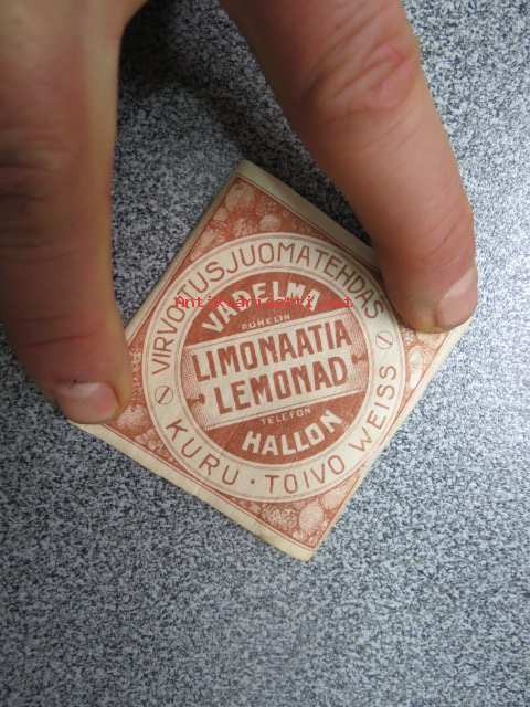 Virvoitusjuomatehdas Toiwo Weiss, Kuru, Vadelma / Hallon Limonaatia / Lemonad (painettu Julius Syren & Co) -etiketti