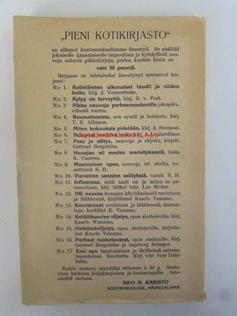 | Saatavilla | 1 kpl | | Julkaisuvuosi | 1913 | | Sivuja | 93 | | Kunto | K2 | | Sidonta/painoasu | Nidottu (pehmeäk.) | | Kielet | Suomi |