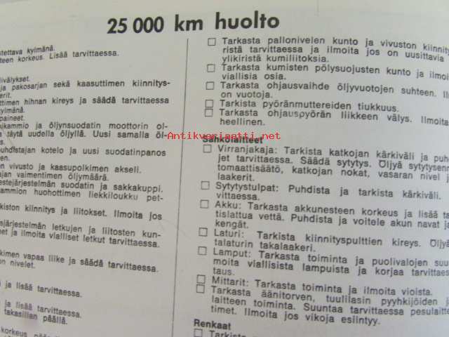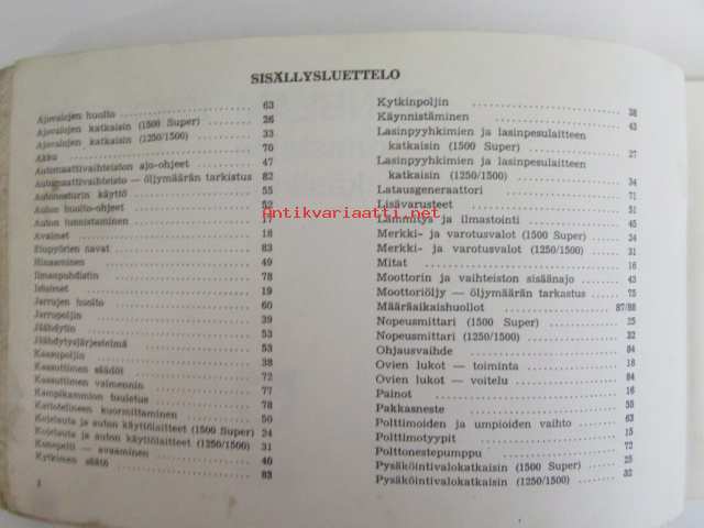 Chrysler Sunbeam, 1971A-5 kokoinen omistajan käsikirja.