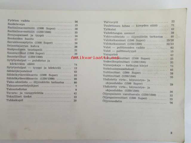 Sunbeam 1250/1500 -käyttöohjekirja