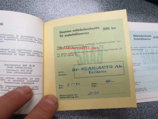 Saab huoltokirja / servicebook (takuuhuoltojen kupongit ym.)