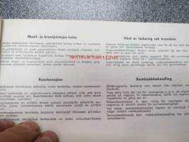 | Saatavilla | 1 kpl | | Julkaisuvuosi | 1966 | | Kunto | K2 | | Sidonta/painoasu | Nidottu (pehmeäk.) | | Kielet | Suomi, Ruotsi |