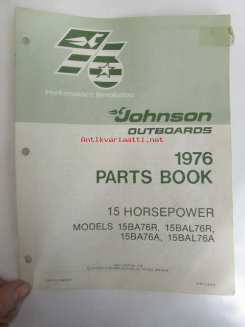 Johnson 15 hp 1976 Parts book models 15BA76R, 15BAL76R, 15BA76A, 15BAL76A