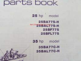 Johnson 25hp JA 35hp 1977 Parts book modelS 25BA77S-H, 25BAL77S-H, 25BF77S, 25BF77S, 35BA77C-H, 35BAL77C-H.