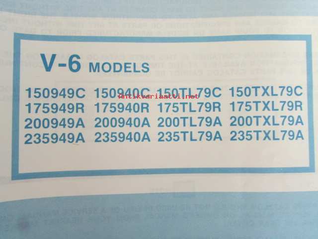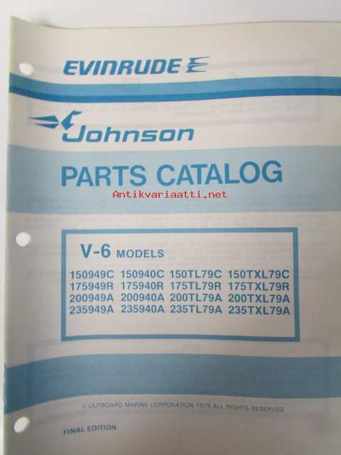 Johnson Motors, 1979Johnson V-6 1979 Parts book models 150949C, 150940C, 150TL79C, 150TXL79C, 175949R, 175940R, 175TL79R,175TXL79R, 200949A, 200940A, 200TL79A, 200TXL79A, 235949A, 235TL79A235940A, 235TXL79A.