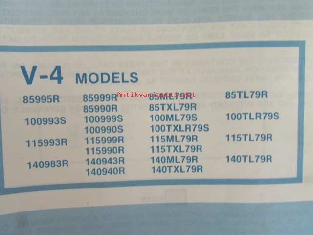 Johnson Motors, 1979Johnson V-4 Models 1979 Parts book 85999R, 85ML79R, 85ML79R,85TL79R, 85990R, 85TXL79R, 100993S, 100ML79S, 100TLR79S, 100990S, 100TXLR79S, 115993R, 115999R, 115ML79R, 115TL79R, 115990R, 115TXL79R, 140943R, 140ML79R, 140TL79R, 140940R, 140TXL79R