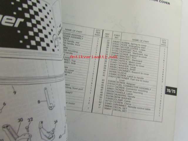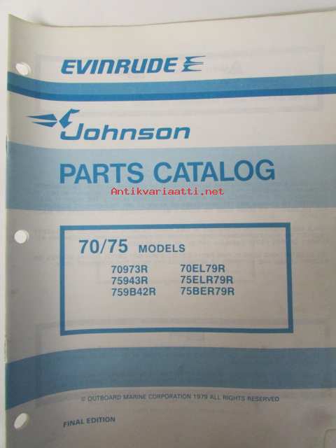 Johnson 70/75hp 1979 Parts book models 70973R, 70EL79R, 75943R, 75ELR79R, 759B42R, 75BER79R