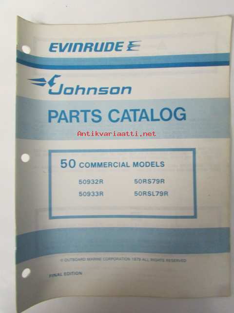 Johnson 50hp 1979 Parts book models 50932R, 50RS79R, 50933R,50RSL79R.