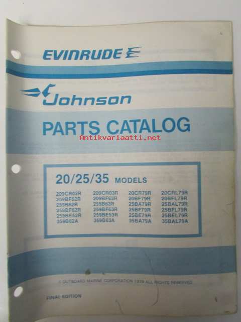Johnson 20/25/35hp 1979 Parts book models, katso tarkemmat mallimerkinnät kuvasta