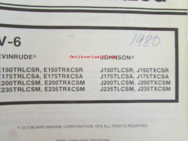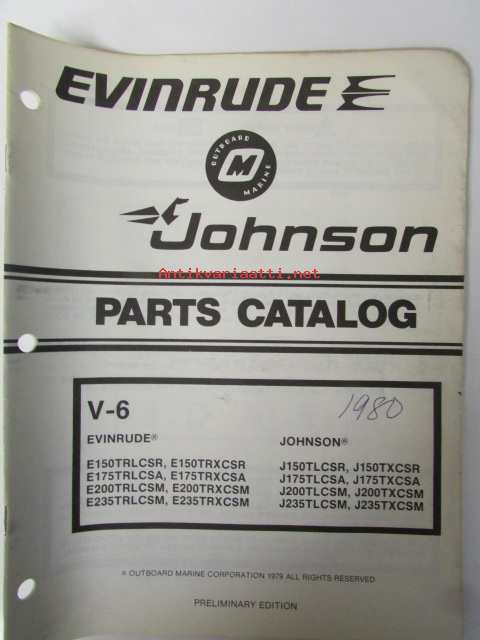 Johnson-Evinrude 1980 V-6 Parts catalog, katso tarkemmat mallimerkinnät kuvasta.