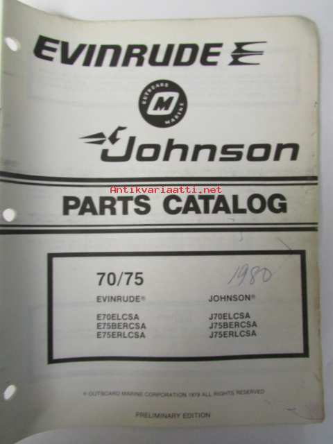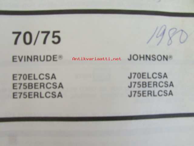 Johnson-Evinrude 1980 70/75hp Parts catalog, katso tarkemmat mallimerkinnät kuvasta.