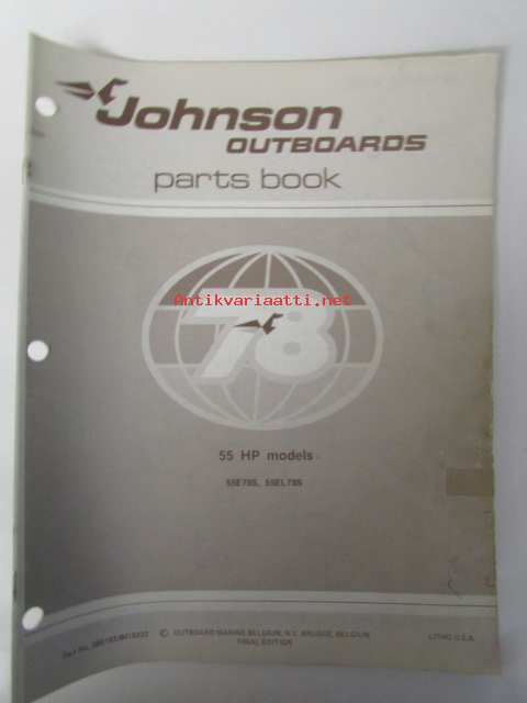 Jonhson 55hp parts book models 55E78S, 55EL78S