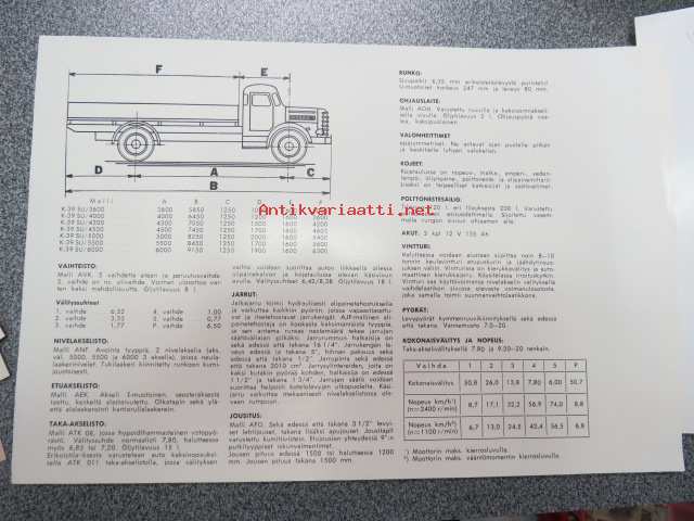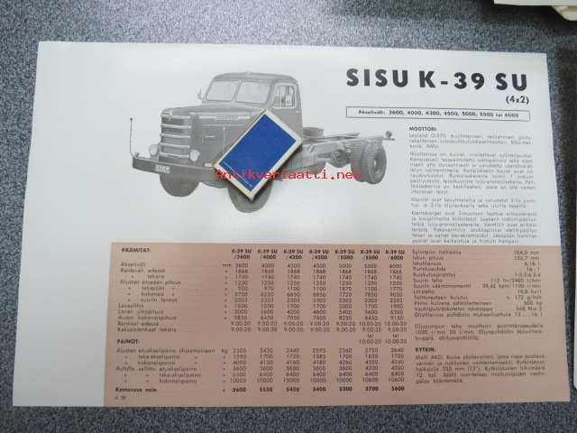 Sisu K-39 SU (4X2) akseliväli 3600, 4000, 4300, 4500, 5000, 6000 -myyntiesite