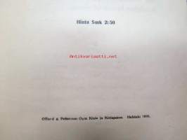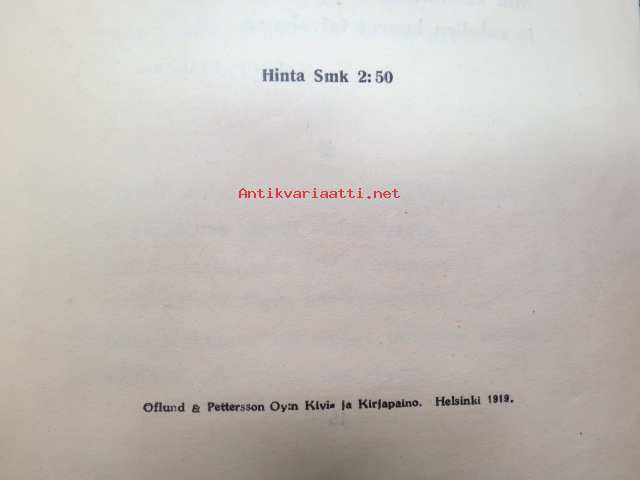 | Saatavilla | 1 kpl | | Julkaisuvuosi | 1919 | | Sivuja | 16 | | Kunto | K2 | | Sidonta/painoasu | Nidottu (pehmeäk.) | | Kielet | Suomi |