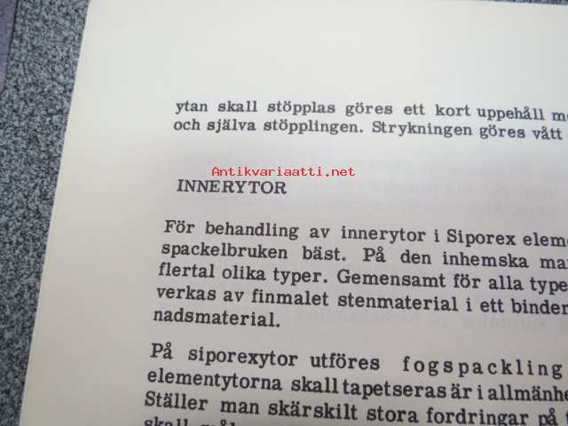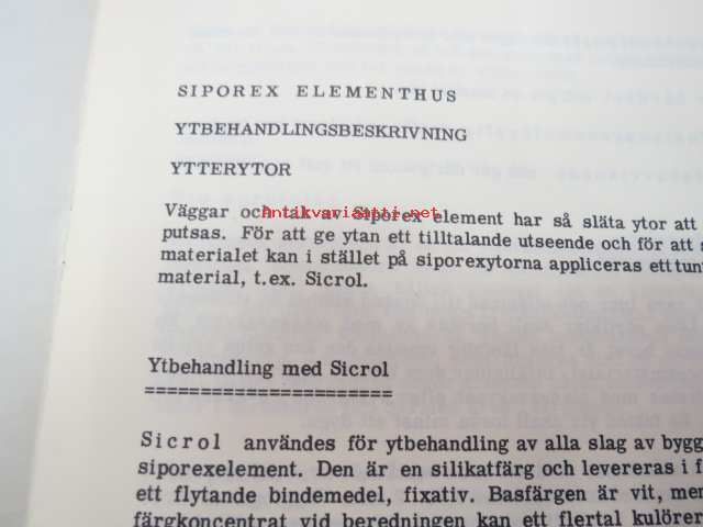 Siporex elementhus ytbehandlingsbeskrivning -siporex pinnan ulkopintakäsitely, työtapaohjeet ruotsiksi