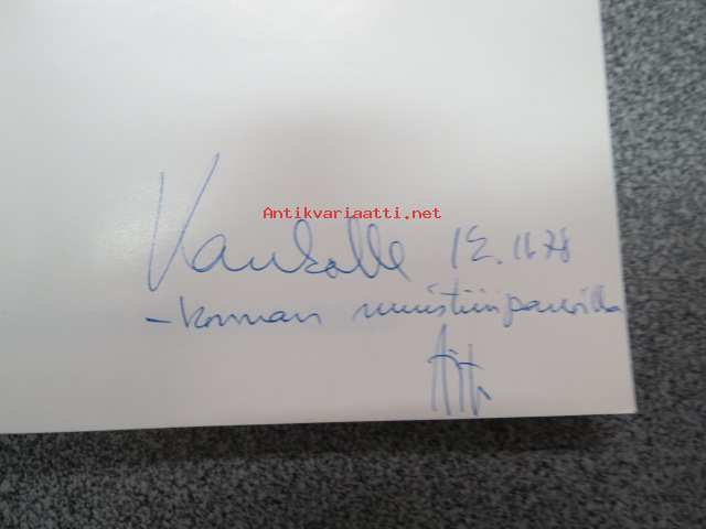 | Saatavilla | 1 kpl | | Julkaisuvuosi | 1978 | | Sivuja | 193 | | Painos | 1. | | Kunto | K3 | | Sidonta/painoasu | Nidottu (pehmeäk.) | | Kielet | Suomi |