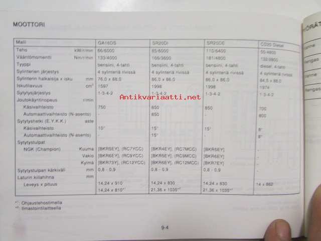Nissan Primera -Käyttöohjekirja Mallisarja P10