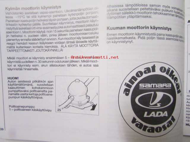 Lada Samara HB 1300/1500 Sedan 1300/1500 -käyttöohjekirja