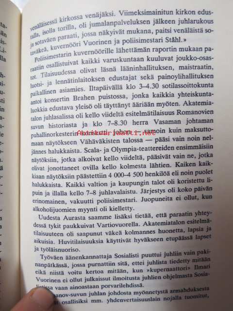 | Saatavilla | 1 kpl | | Julkaisuvuosi | 1979 | | Sivuja | 253 | | Kunto | K3 | | Sidonta/painoasu | Sidottu (kansipaperit) | | ISBN | 951-0-09345-9 | | Kielet | Suomi |