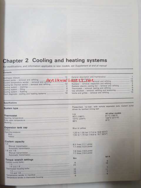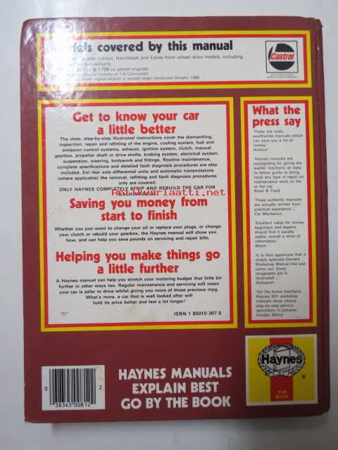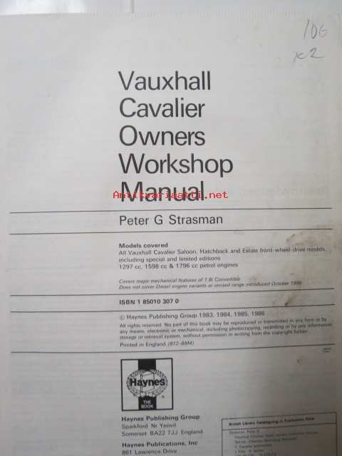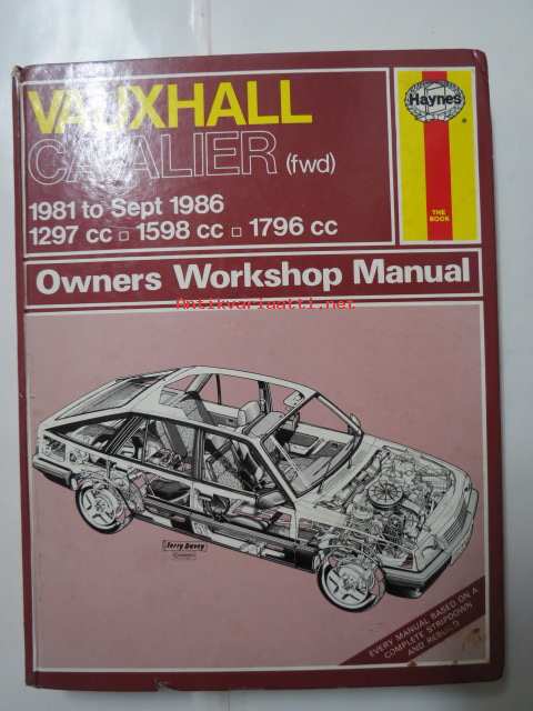 Vauxhall Cavalier (fwd) 1981 to 1986, 1297cc, 1598cc, 1796cc. Owners worksop manual.
